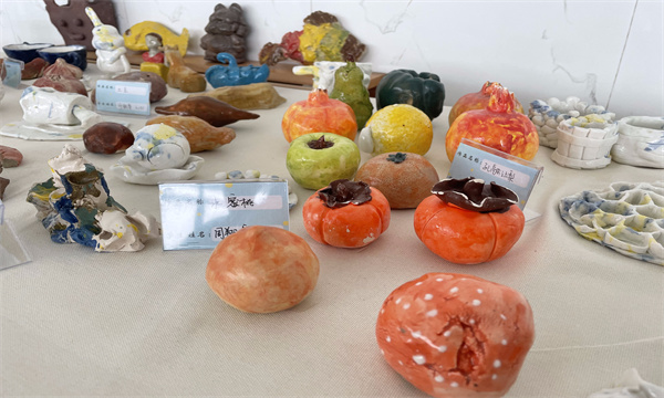 孩子们在老师的指导下自由发挥想象,看似不起眼的一团泥巴经过巧手的拍打、揉捏、上色、烧制后,逐渐变成一件件精美的工艺品。亭台楼阁、小桥流水,再现了如诗如画的江南水乡;甜津津的水蜜桃、酸溜溜的柠檬、鲜美的蘑菇凑成了惟妙惟肖的果蔬拼盘……