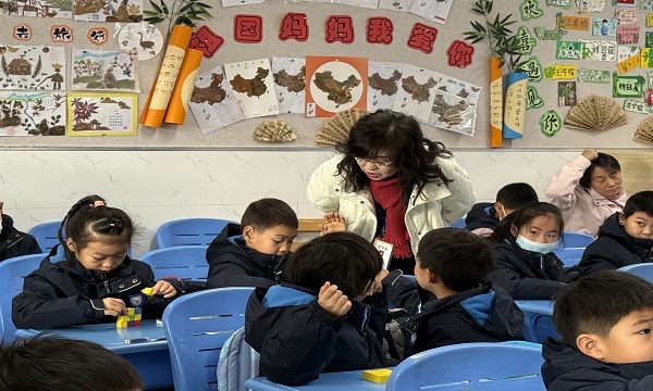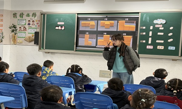 随后,督导组听了一节数学课《图形拼搭》。课堂上,教师秉持“低容量、高参与、强体验”的理念组织教学活动,尝试小小组合作学习的策略,充分关注学生个体差异,对内敛却思维敏捷的孩子给予针对性引导,尽可能让每个学生获得知识的同时还能得到表达与成长的机会,彰显“关注每一个、发展每一个”的教育温度。