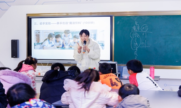 随后的动手实验环节更是将课堂气氛推向了顶峰。社团老师变身“科学厨师”,开始制作碳酸饮料,学生们仔细观察气泡在液体中翻腾升起的瞬间。当原本平静的水面在化学反应下变得“滋滋”作响,晶莹的碳酸气泡不断跃出,孩子们发出了阵阵惊叹声。这种从理论到实践的跨越,让复杂的化学知识变得触手可及、妙趣横生。