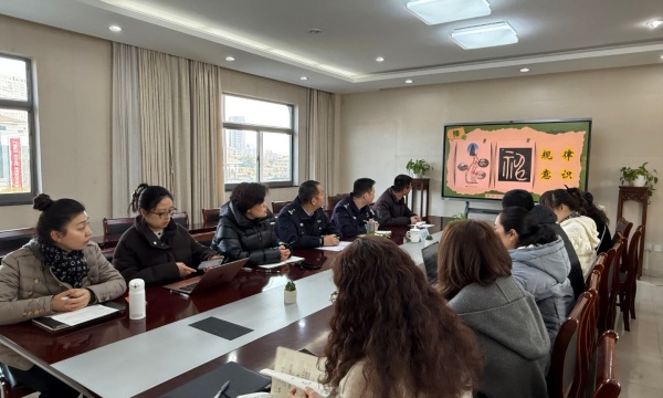 讲座结束后,两位法治副校长还参加了学校行政会议,与学校行政班子共同研判校园安全工作。会上,蒋琳校长全面汇报学校安全工作情况,明确校园安全工作的核心方向与整体思路。随后,我校四位分管副校长就学校安全舆情事件的处理案例、教育教学的安全管理措施、社团活动的管理要求和学生身心健康的举措等方面进行了交流。