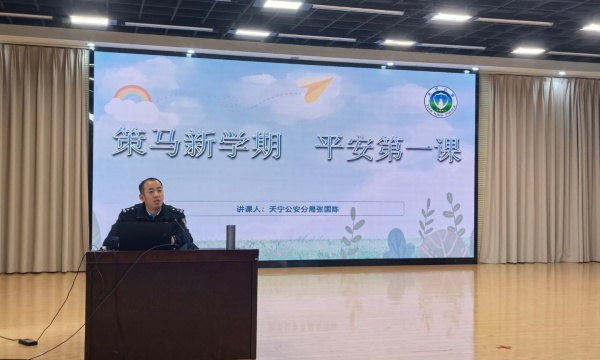 活动当天,蒋琳校长为两位法治副校长郑重颁发聘书,进一步夯实警校联动护校根基,明确法制副校长职责使命,为校园法治安全教育常态化、规范化开展奠定基础。随后,张副局长以“策马新学期 平安第一课”为主题,为全体师生开展安全警示教育讲座。讲座围绕“三个警惕”展开,结合天宁区本地案例与数据,详细讲解电信网络诈骗、交通安全、消防安全三大核心安全知识,拆解诈骗套路、明确交通规则、普及消防技巧,通过真实案例以案释法,传授防骗口诀与逃生方法,同时结合新修订的《中华人民共和国治安管理处罚法》强化法治教育,引导学生牢记安全知识、传播法治理念。